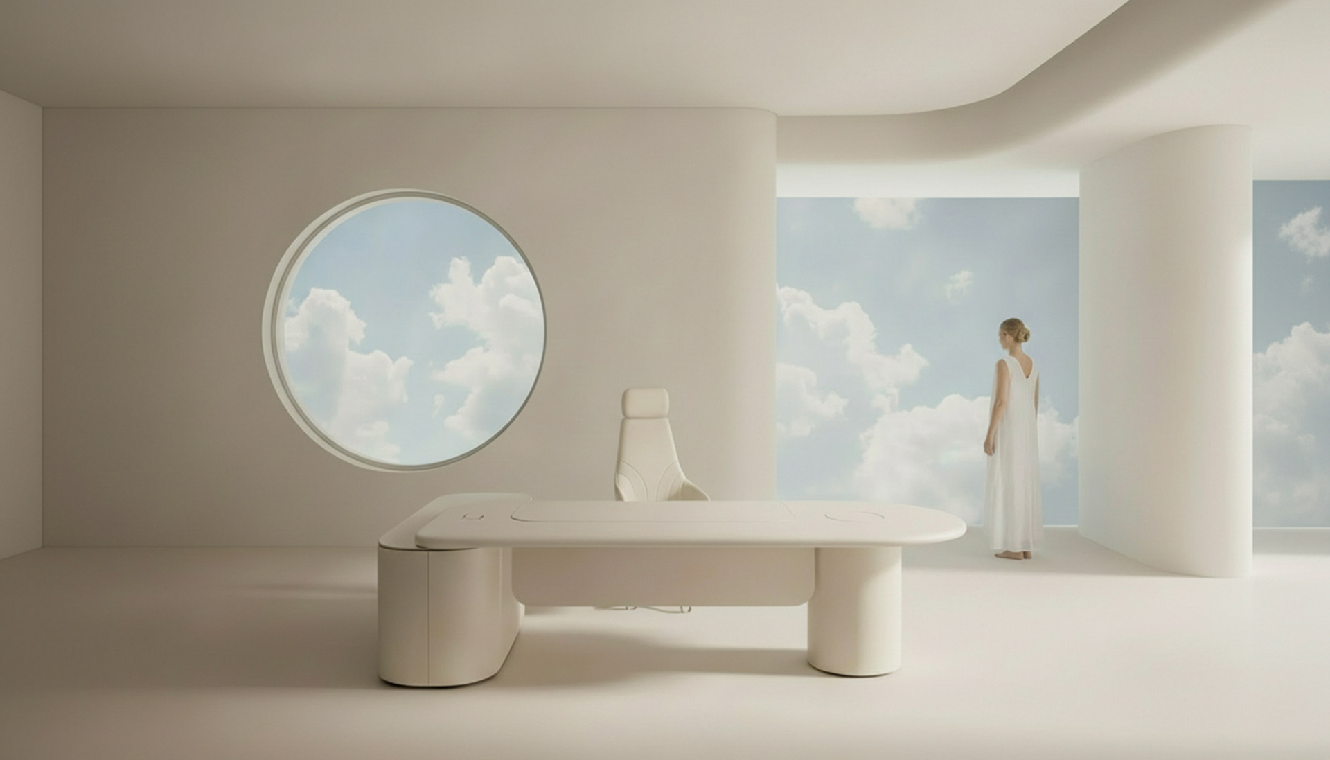 It is with this same intention that we have decided to “dress” our DEA desk in Cloud Dancer: an ethereal garment that sets design, material, and imagination in dialogue.