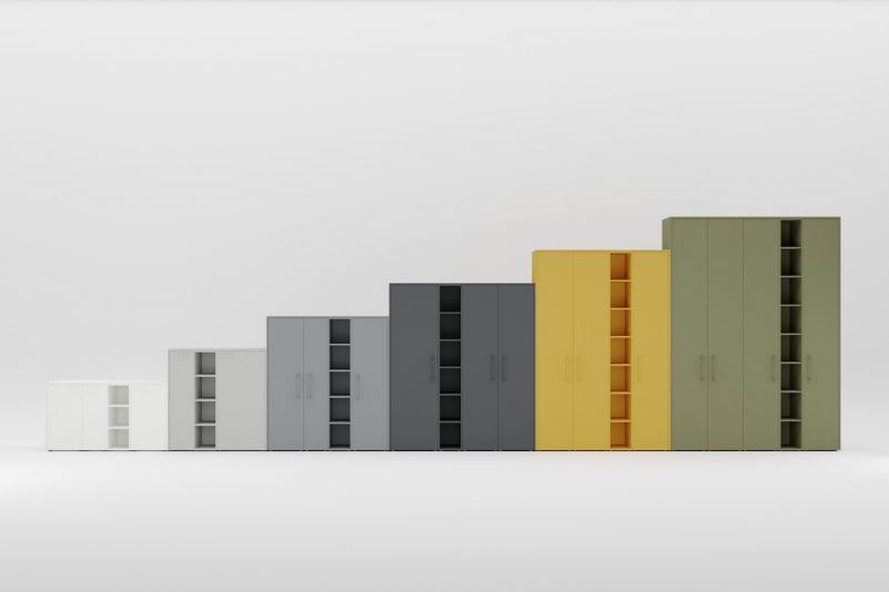 It is characterised by a metal structure with a light and essential design, in perfect harmony with the tops available in melamine, wood, Fenix, lacquered, brilliant, anti-touch and printed glass in all the colours in the catalogue.