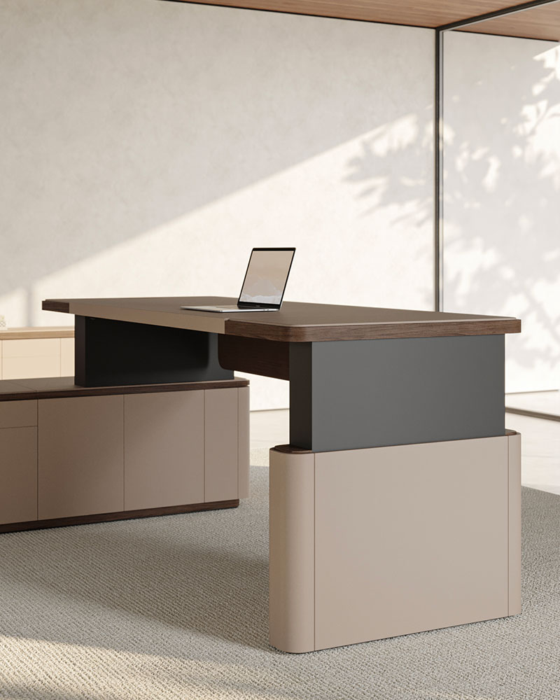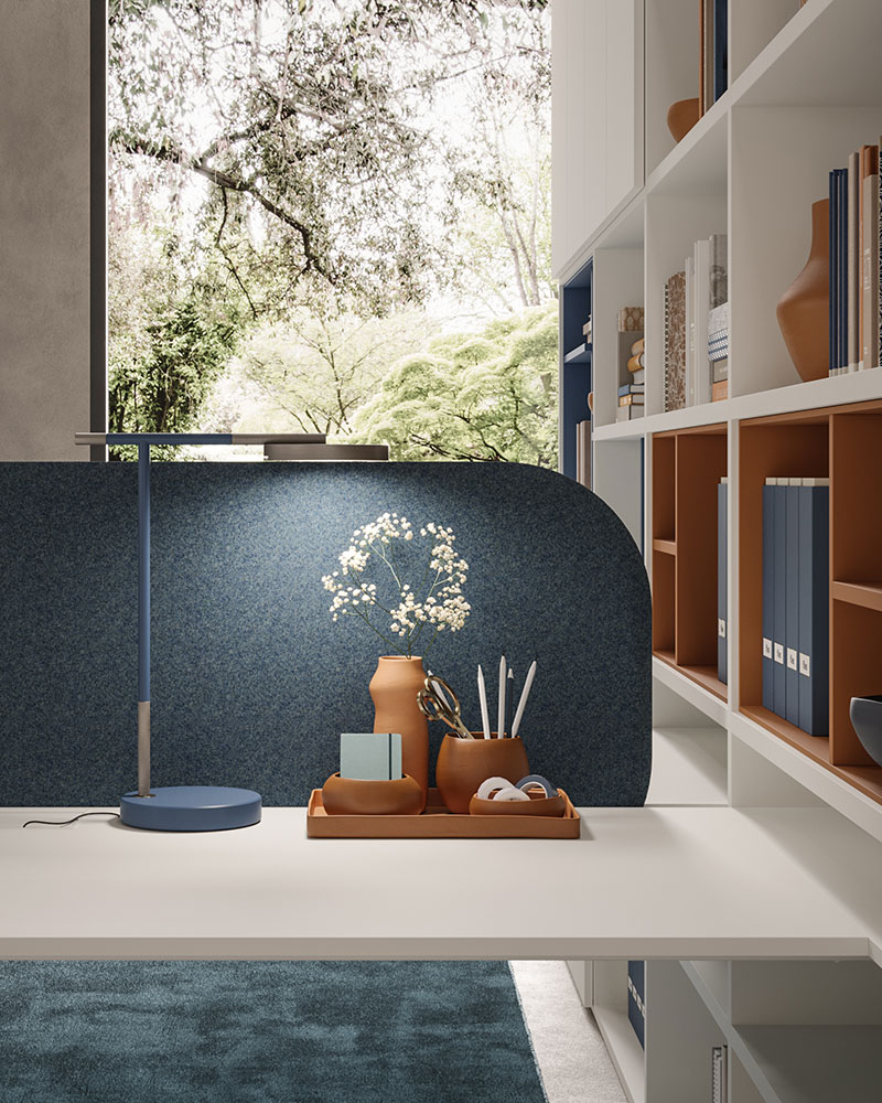 The Flow desk embraces this principle by transforming movement into a design value: the adjustable height allows the user to choose the most suitable posture for their needs, making the gesture an integral part of the work style. It is not just ergonomics, but a dynamic approach that accompanies the different rhythms of the day.