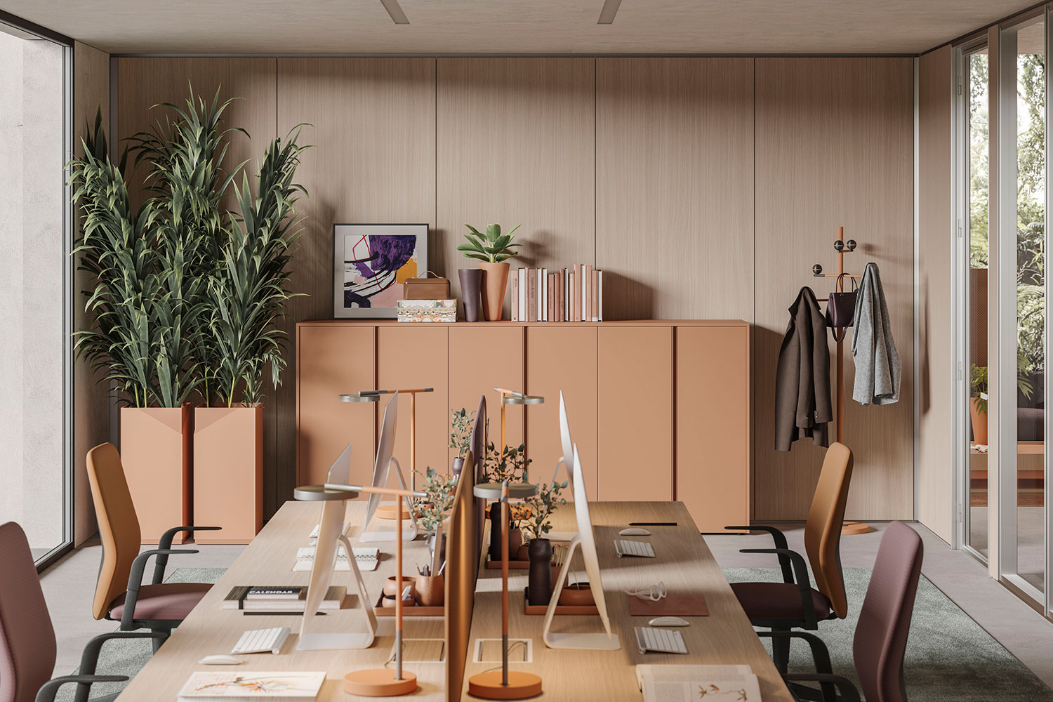 Color, order, ergonomics, and movement come together to create stimulating, harmonious, and comfortable environments. Areas for focused work and spaces for interaction allow employees to experience the office at its best, making it more pleasant, functional, and welcoming.