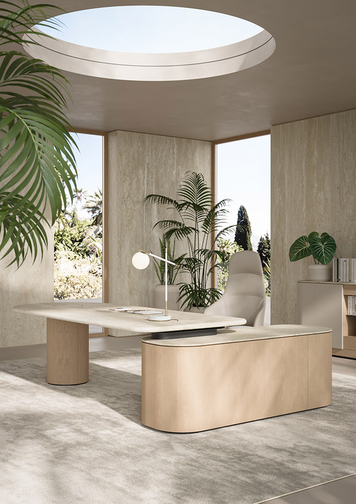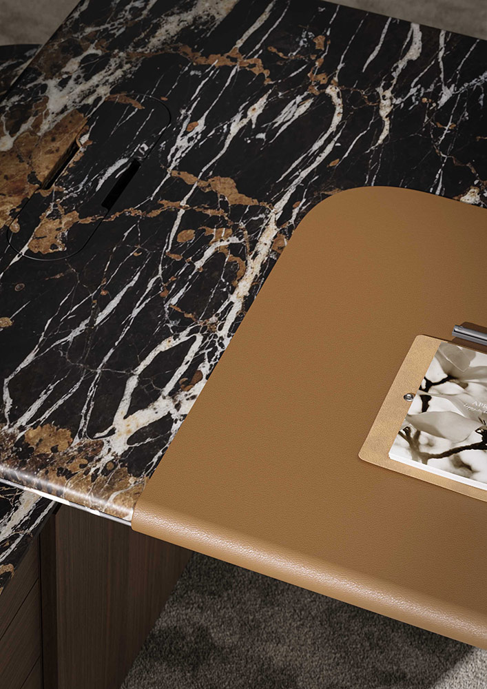 These approaches are not mutually exclusive. Combining polished and honed marble within the same environment—across desks, storage elements, or custom conference table solutions—creates a calibrated contrast. This interplay enhances spatial sophistication, without disrupting visual continuity.