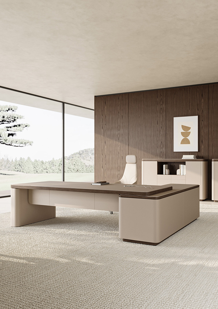 A desk that combines minimalist design and sophisticated functionality