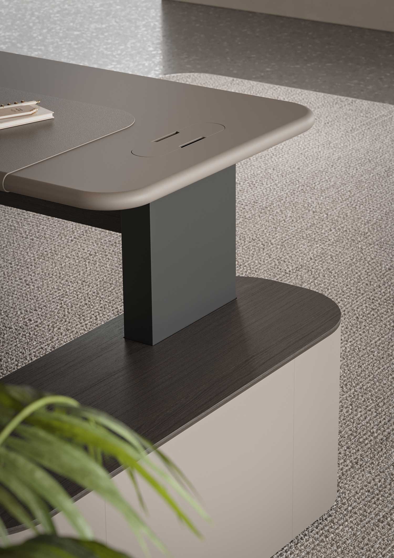 The fully integrated cable management ensures order, discretion, and efficiency, even in the most demanding executive environments.