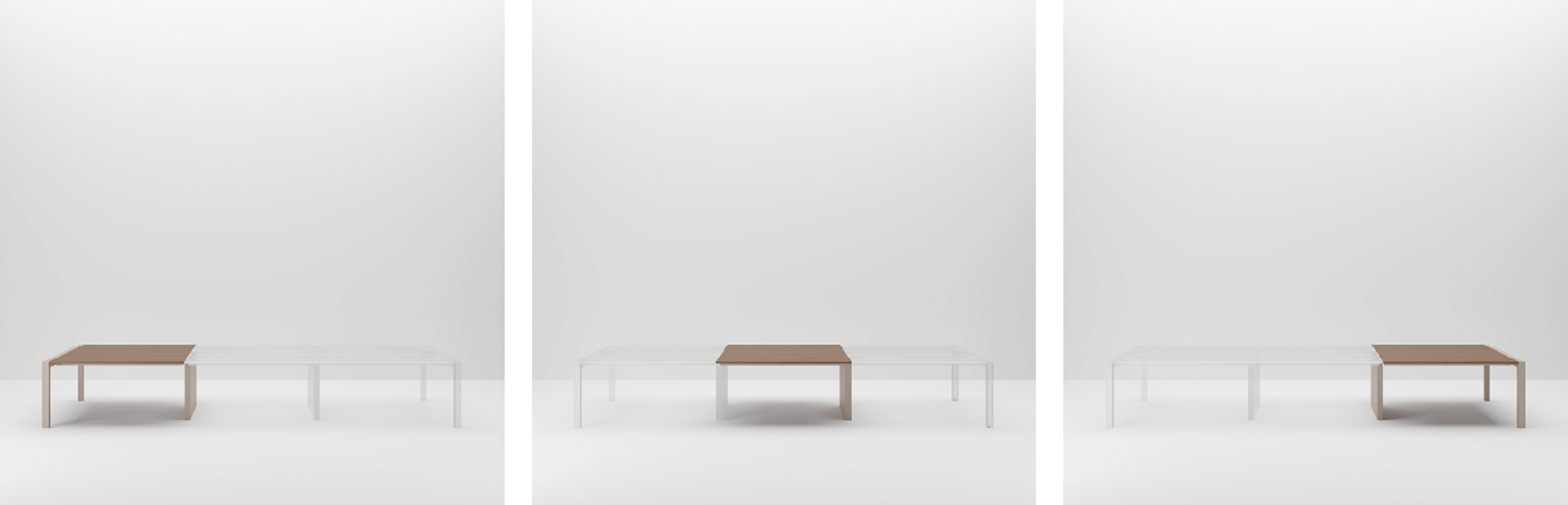 These collections stand out for an aesthetic simplicity that is key to their functional flexibility, allowing the meeting room table to transcend its traditional role. The real innovation lies in its capacity for a double life: from a formal meeting table, it rapidly transforms into a series of individual workstations.