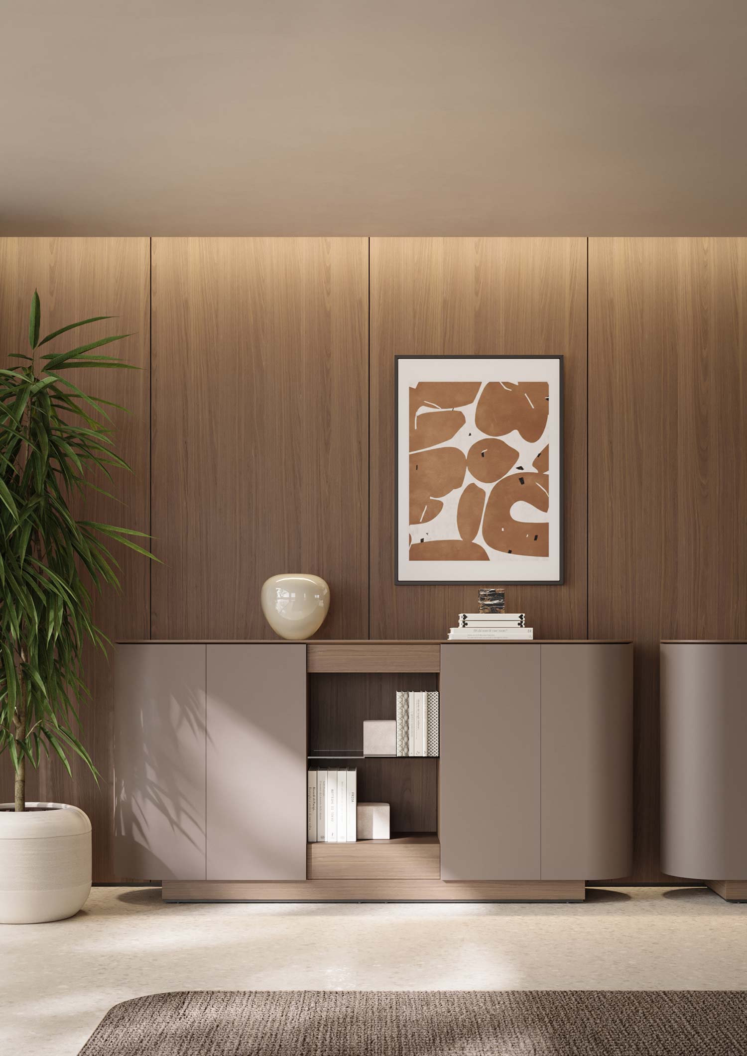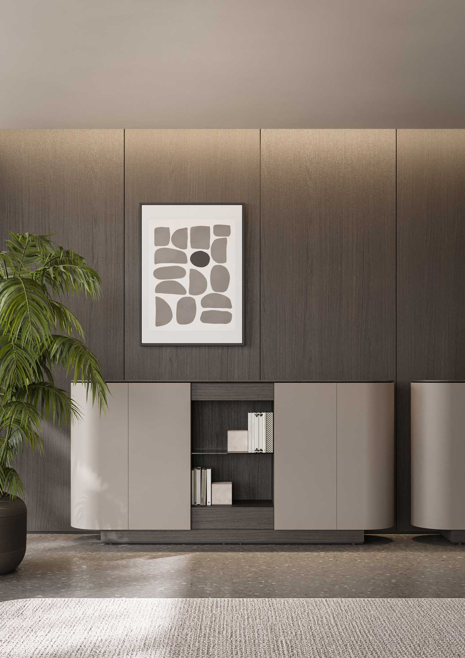 Elle se compose d’un bureau, de tables de réunion, de buffets, de consoles et d’une série de tables basses, offrant une solution complète pour des espaces exécutifs élégants. Conçue pour ceux qui recherchent un équilibre entre fonctionnalité et essentialité, la collection Dea évoque la délicatesse et la force, à l’image d’une déesse.