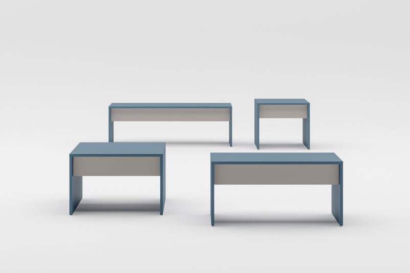 Le bureau se caractérise par une structure en bois de 40 mm d’épaisseur, disponible en mélamine et en laqué. Le plateau est disponible en mélamine, en laqué, en verre laqué anti empreintes, en effet marbré brillant et imprimé, en Fenix NTM et en placage de bois. Pour répondre aux besoins d’un espace de travail flexible et contemporain, trois versions sont disponibles: la configuration simple, celle avec un retour à profondeur réduite et celle avec un retour à surface traditionnelle.