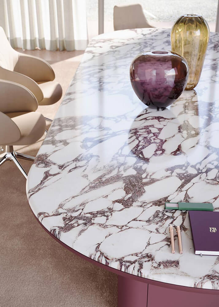 In questo articolo analizziamo le principali tipologie di marmo utilizzate per scrivanie e tavoli da riunione, analizzandone le caratteristiche estetiche, il pregio del materiale e l’impatto che ciascuna scelta può avere sull’identità e sulla percezione dello spazio di lavoro.