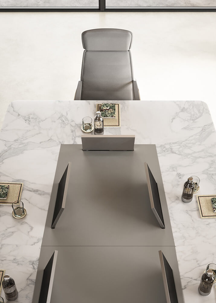 Attraverso soluzioni su misura e materiali selezionati, scrivanie e tavoli riunioni si trasformano in veri elementi di rappresentanza, capaci di comunicare valore, solidità e attenzione al dettaglio.