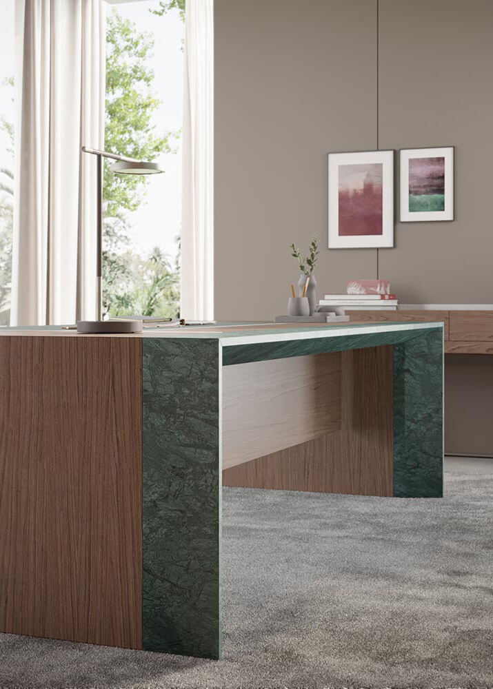 Il marmo è molto più di una semplice superficie: è una dichiarazione di stile, un elemento identitario capace di definire il carattere di uno spazio di lavoro. Che si tratti di una scrivania direzionale o di un tavolo riunione, la scelta del marmo giusto influisce sull’estetica, sulla percezione del brand e sull’esperienza quotidiana di chi vive l’ambiente.