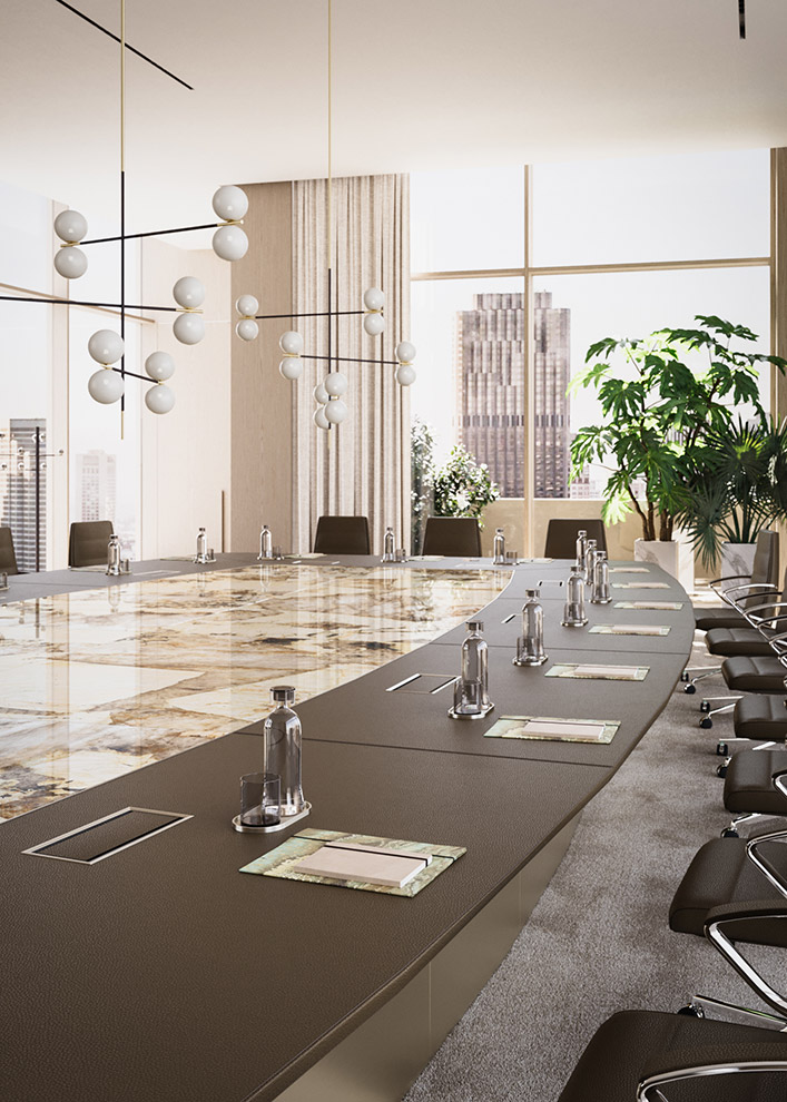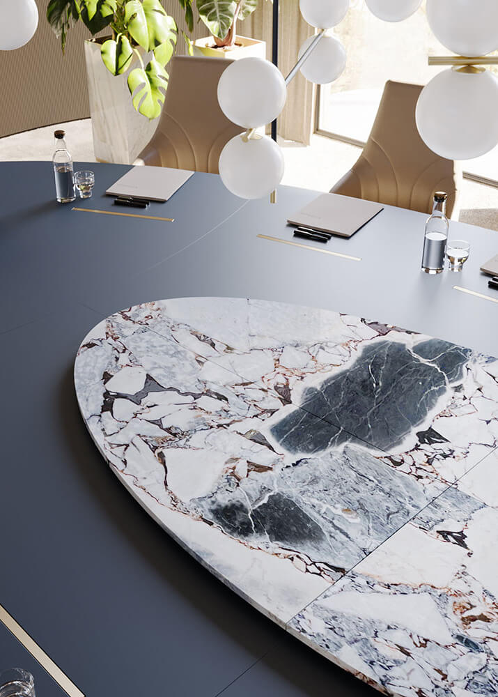 Applicazione ideale: una delle opzioni più scenografiche, ideale per boardroom di rappresentanza che richiedono attenzione e prestigio.