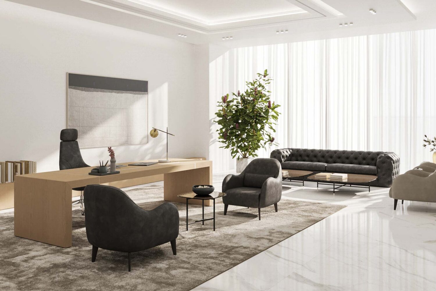 La collezione direzionale Dea si distingue per le sue linee essenziali e le forme sinuose, combinando un’estetica raffinata con un design minimalista.