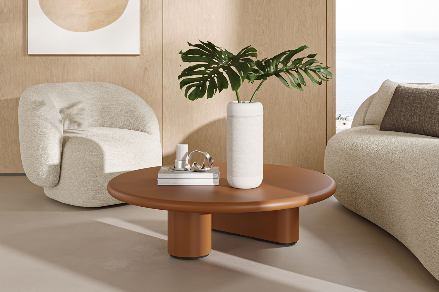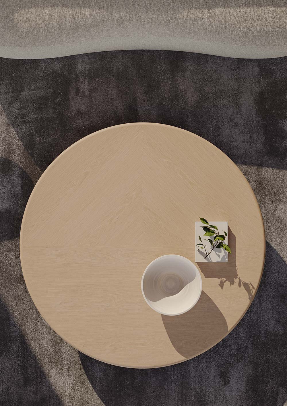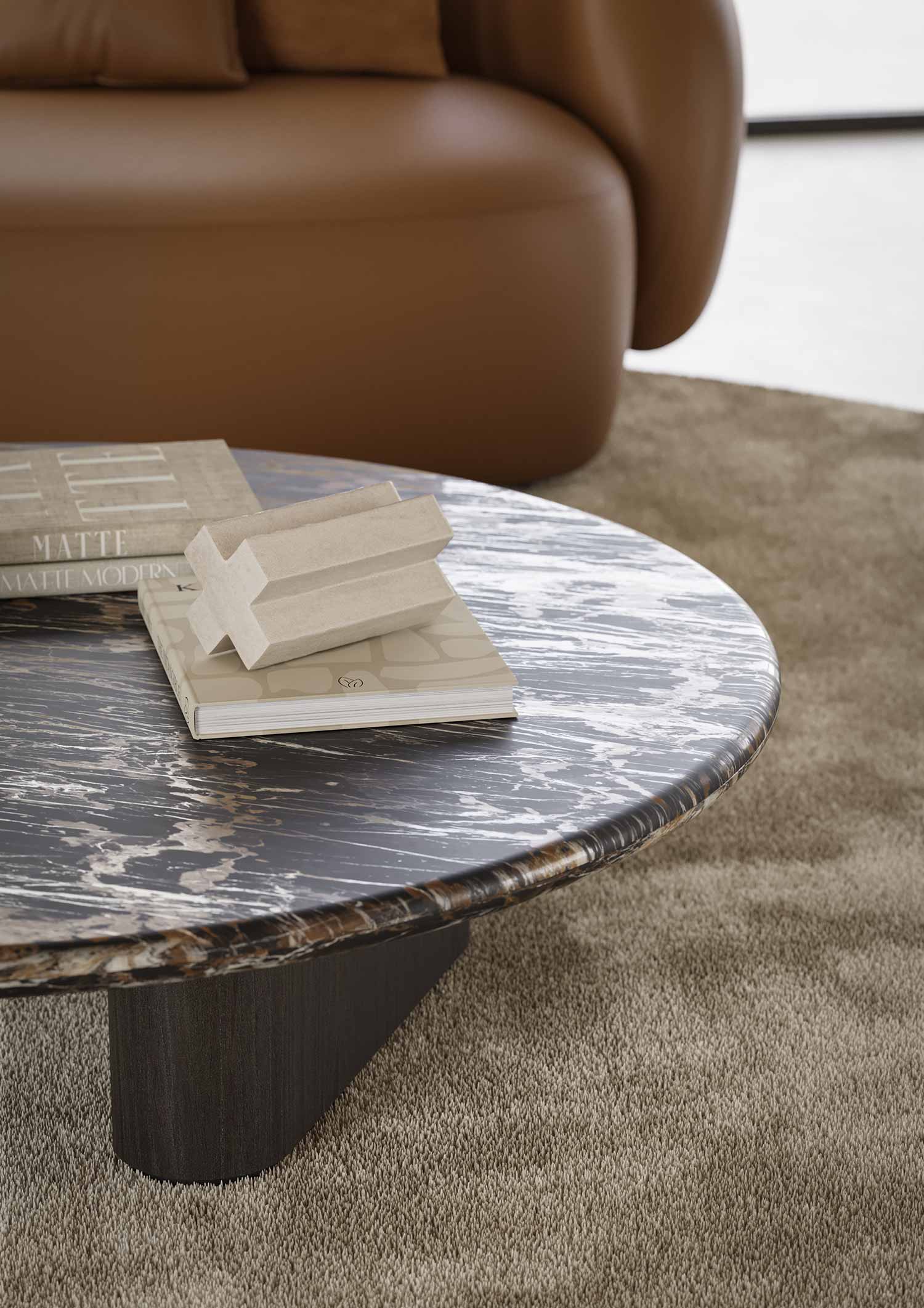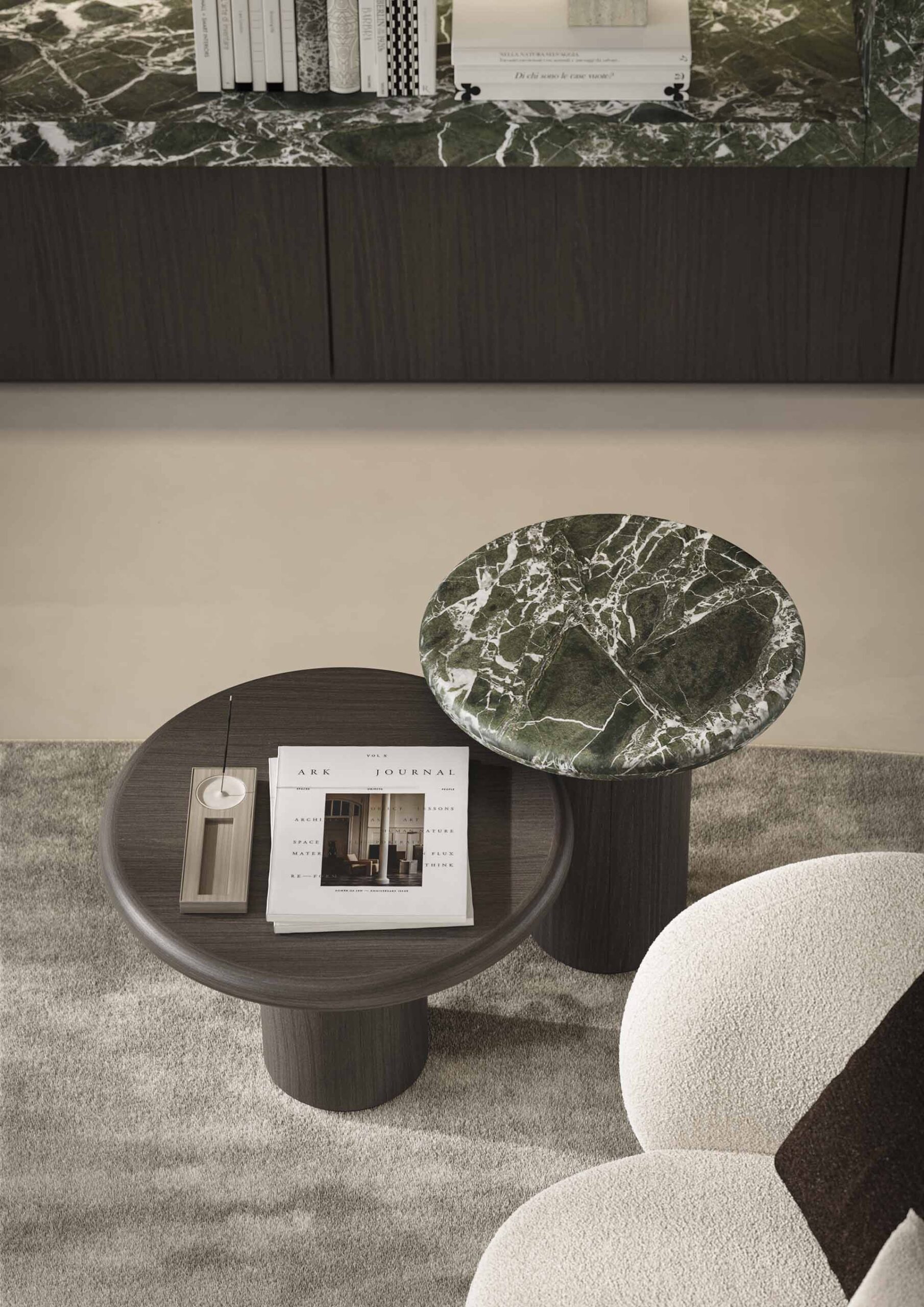 Una collezione di tavoli caffè dalle linee essenziali e forme sinuose.