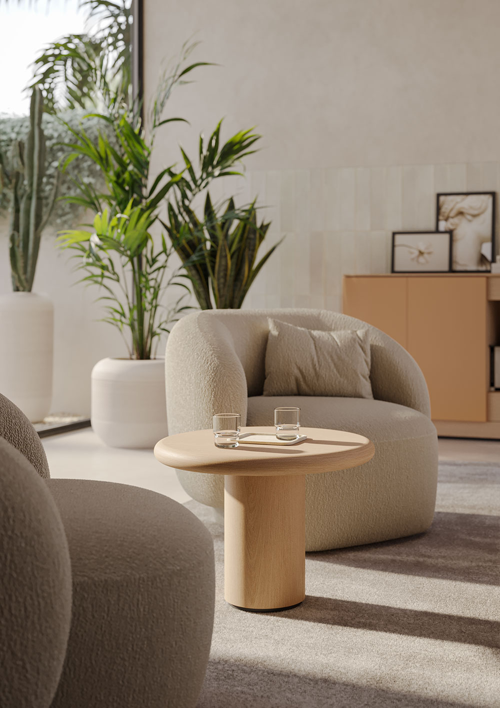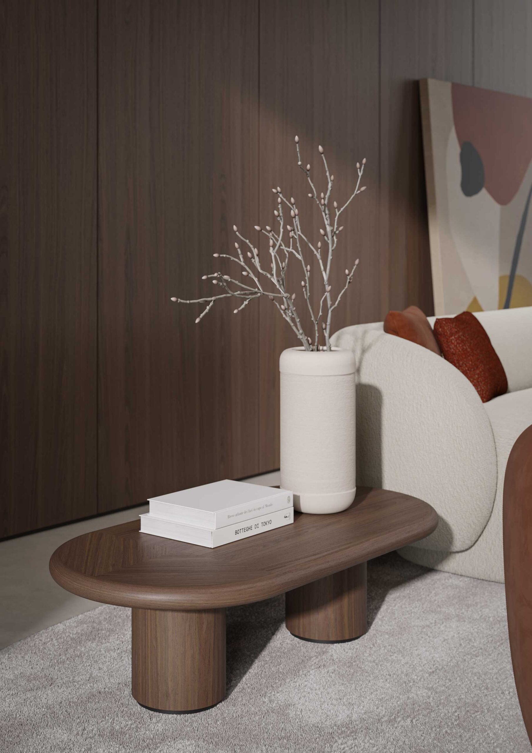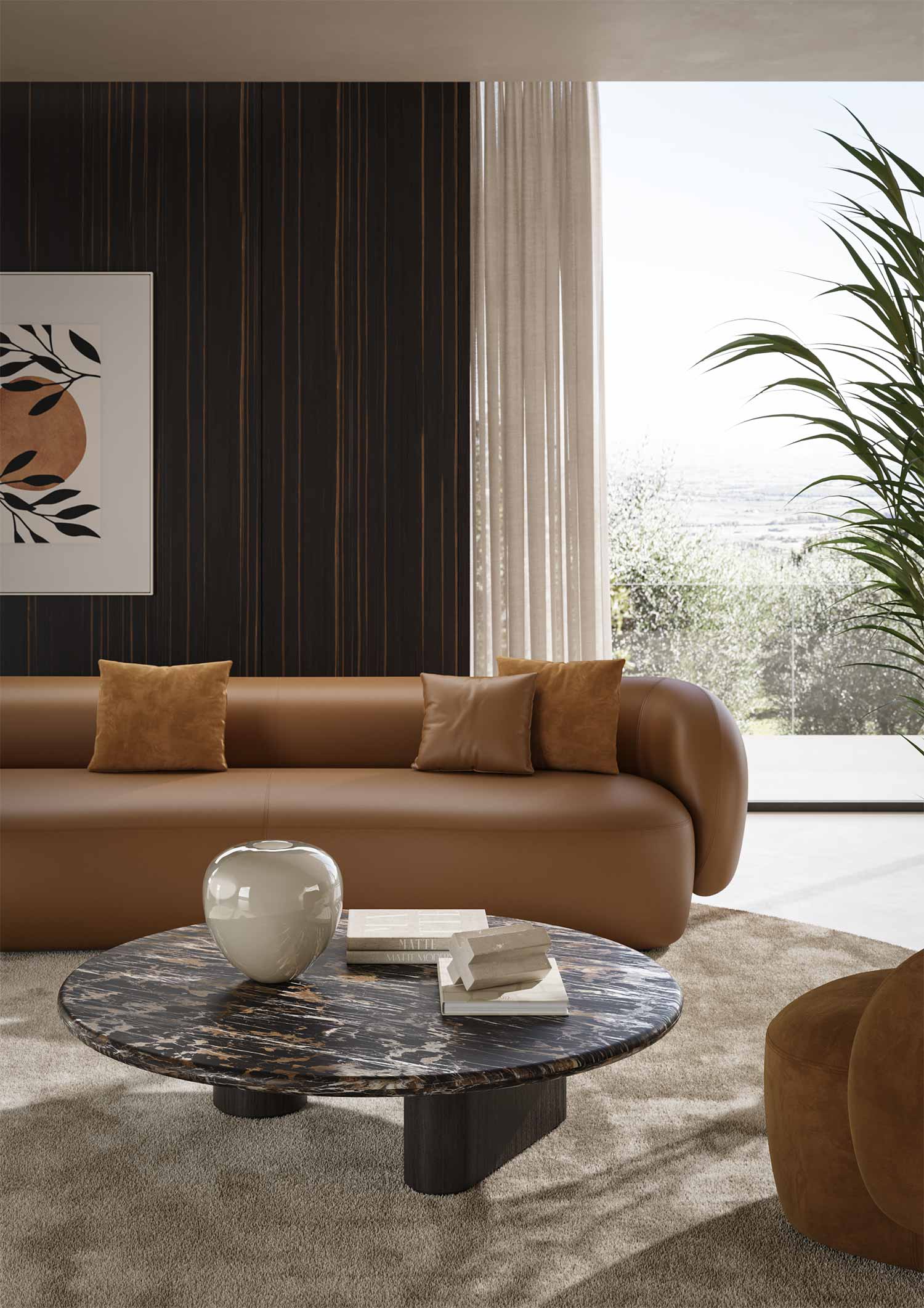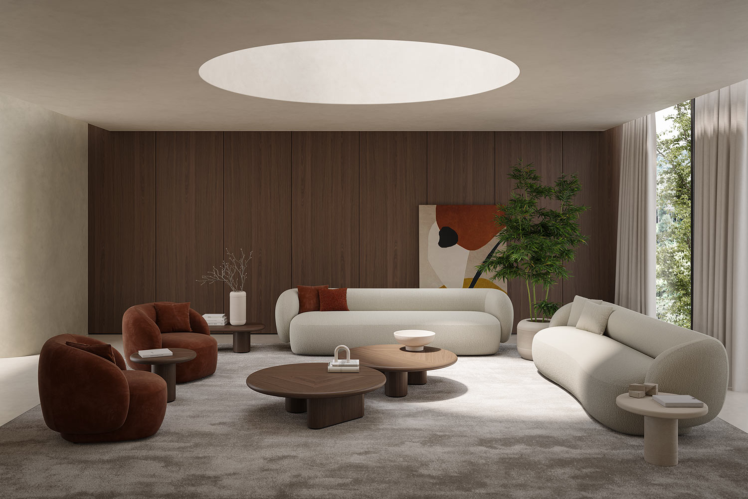 Una collezione di tavoli caffè dalle linee essenziali e forme sinuose.