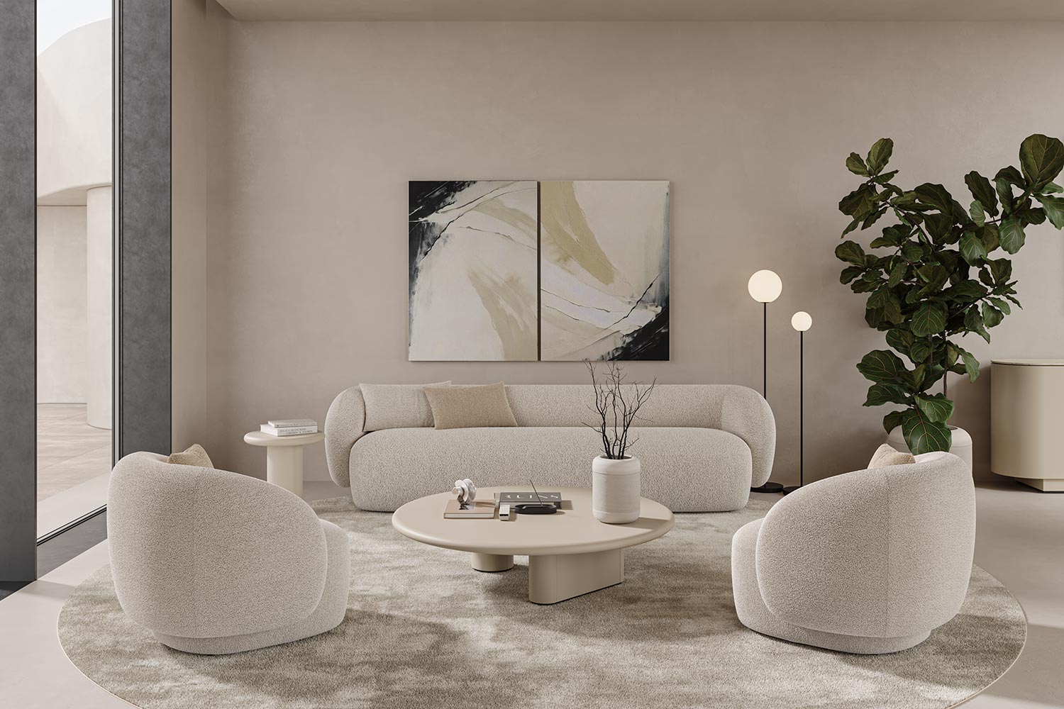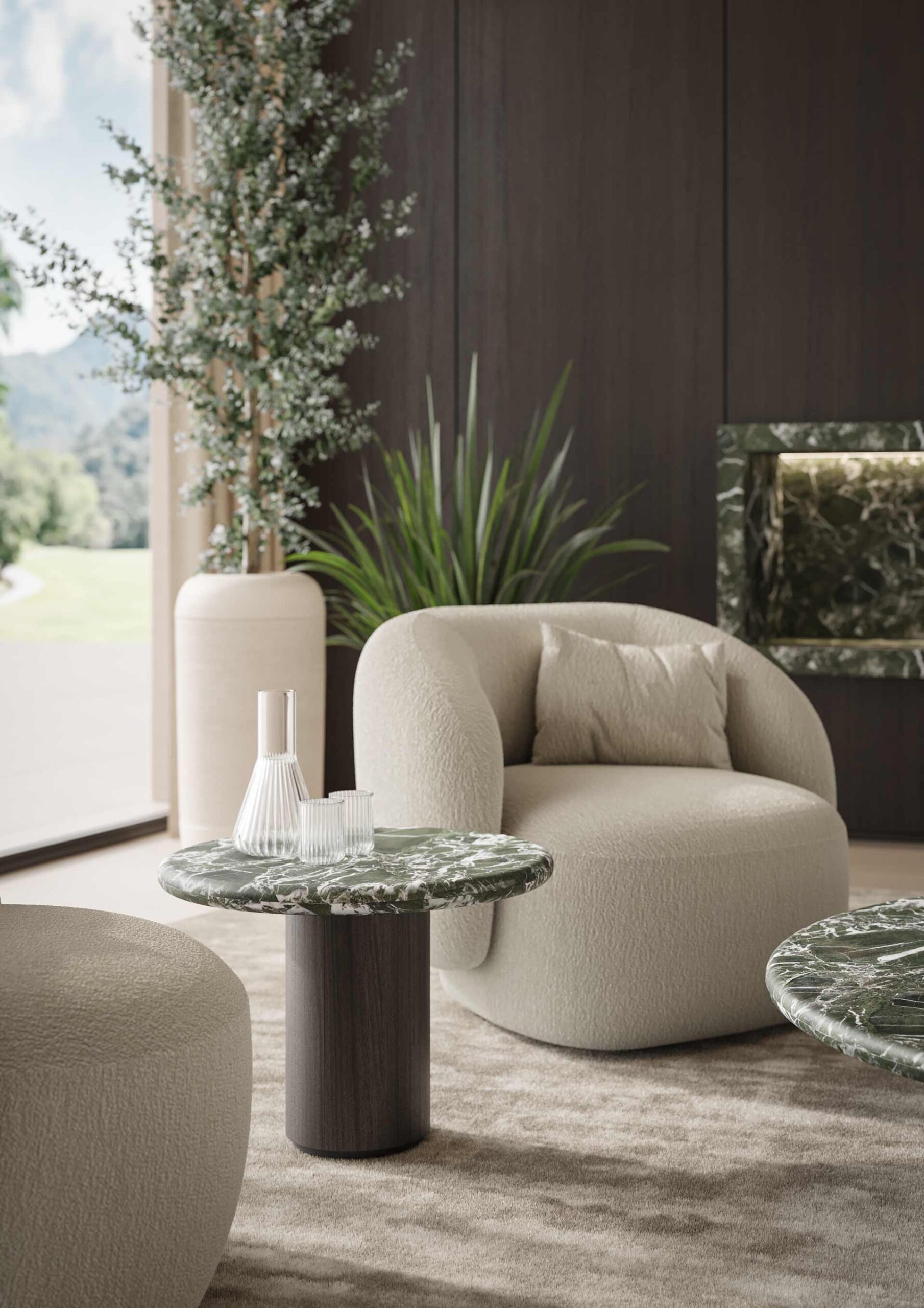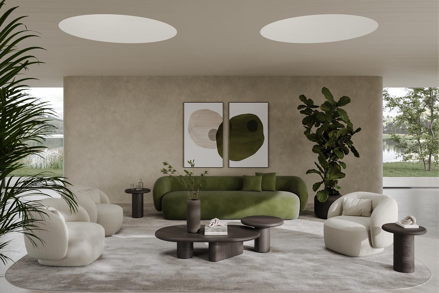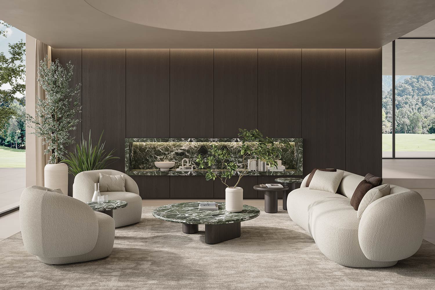 Una collezione di tavoli caffè dalle linee essenziali e forme sinuose.